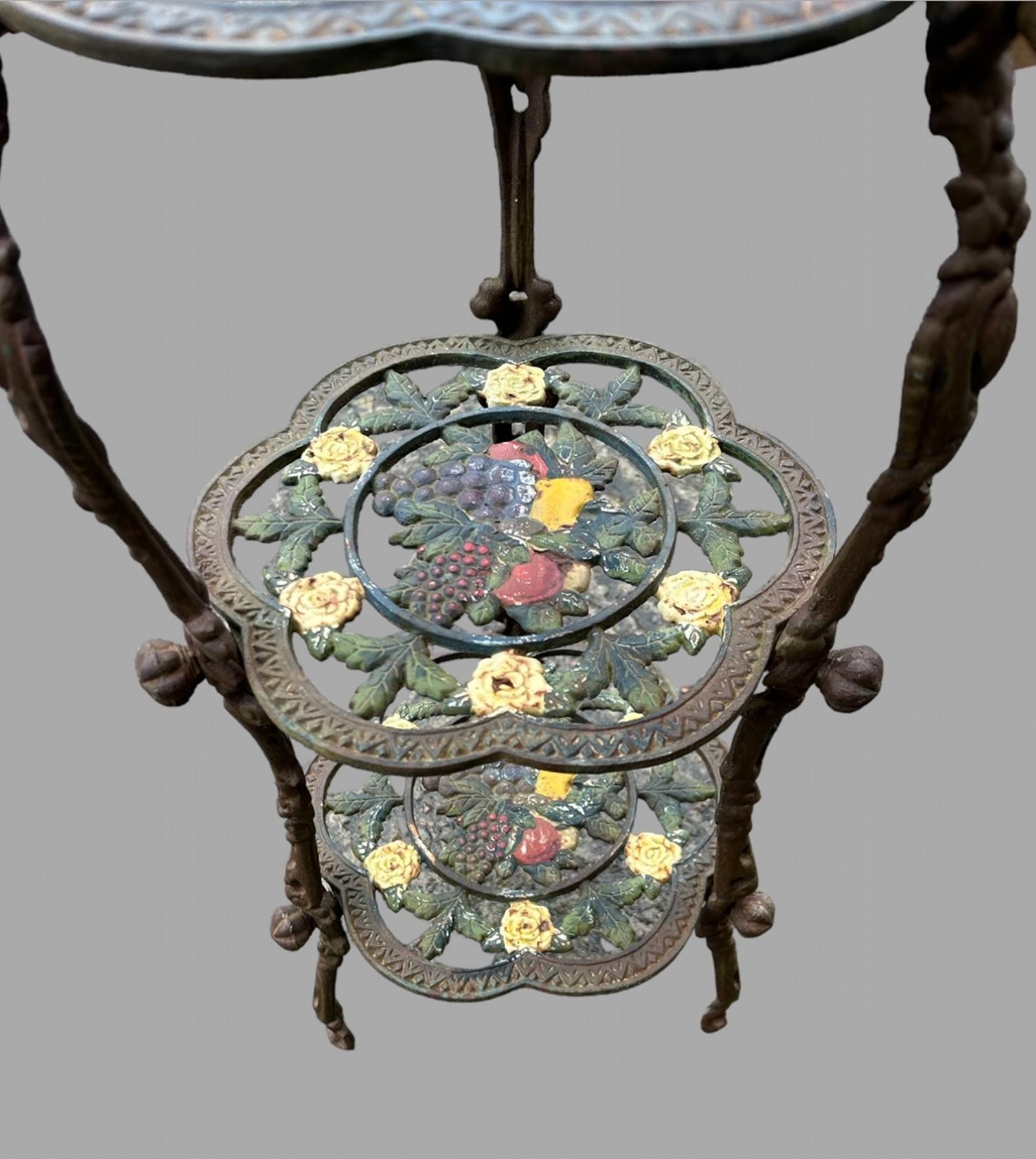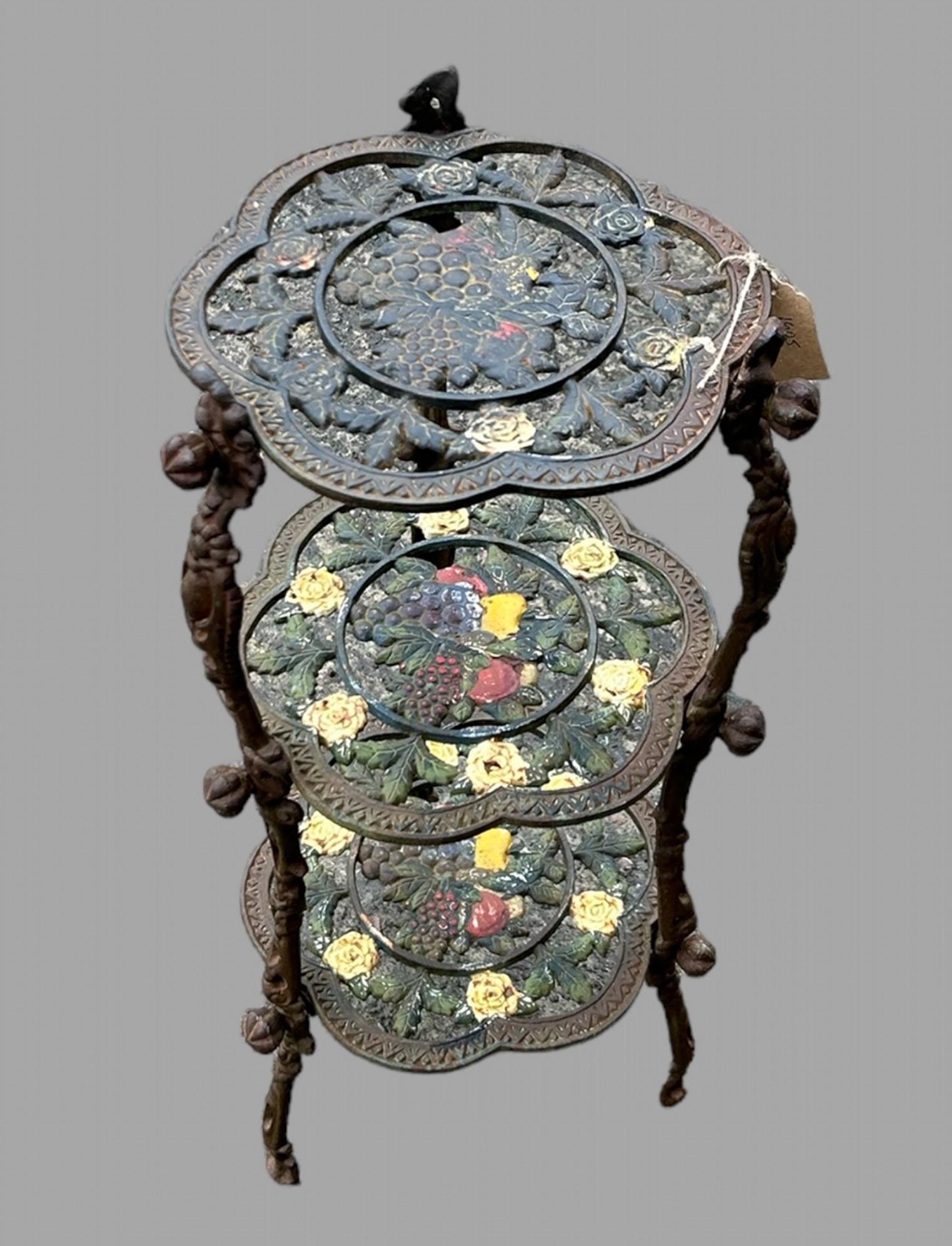 Offered for sale is this late 19th Century (c.1890) antique ornate cast iron three tier pot stand with decorative detail.